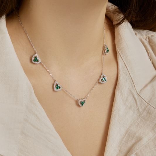 Emerald Clover Heart Necklace